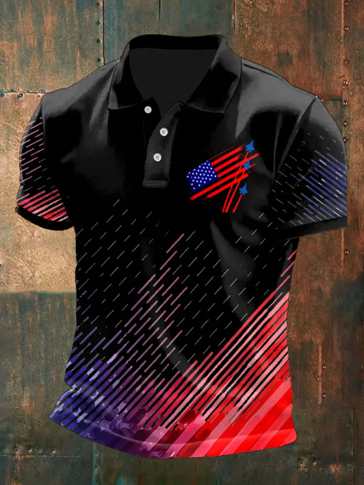Men's Retro Independence Day Print Polo Shirt