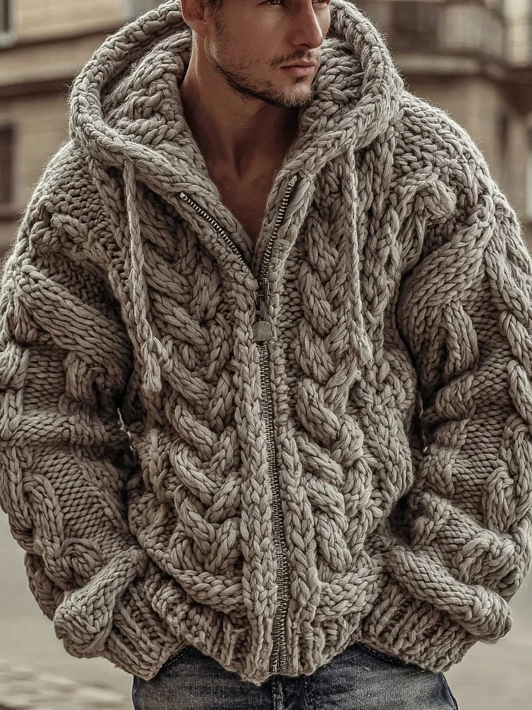 Vintage Fairman Island Jacquard Zip Hooded Cardigan Sweater