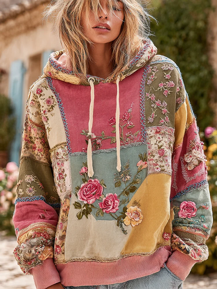Vintage Rose Floral Patch Comfortable Warm Hoodie